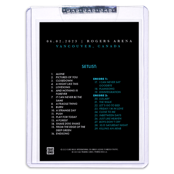 GAS The Cure June 2, 2023, Vancouver, BC, Canada Trading Card Illustrated by Simon Marchner