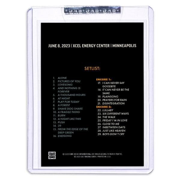 GAS is proud to present the official The Cure Shows Of A Lost World North America Tour 2023 Trading Cards, featuring the poster artwork and setlist from each show.